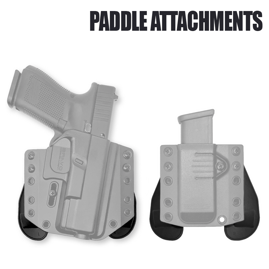 The Paddle attachments convert your OWB gun holster and magazine pouches into a quick “on and off” Paddle Holster. Just slip your Paddle Holster over your belt, it’s that simple. The holster is safely secure and will not let go until you decide otherwise. Comfortable to wear all day long making your everyday concealed carry lifestyle easy.